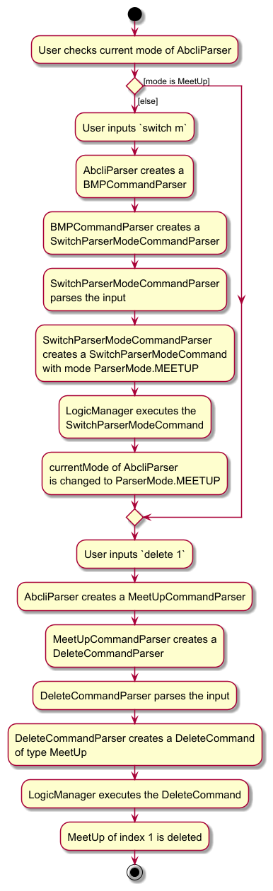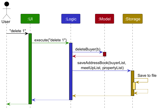 DeleteCommandParser) and uses it to parse the command. The type of parser created here is dependent on the CommandParser created in step 2, e.g. aMeetUpCommandParserwill create aDeleteCommandParserfor theMeetUpclass, while aBuyerCommandParserwill create aDeleteCommandParserfor theBuyerclass. - This results in a
