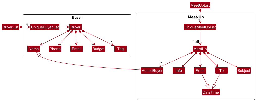 Modelcomponent, as it displaysBuyer,MeetUporPropertyobject residing in theModel.